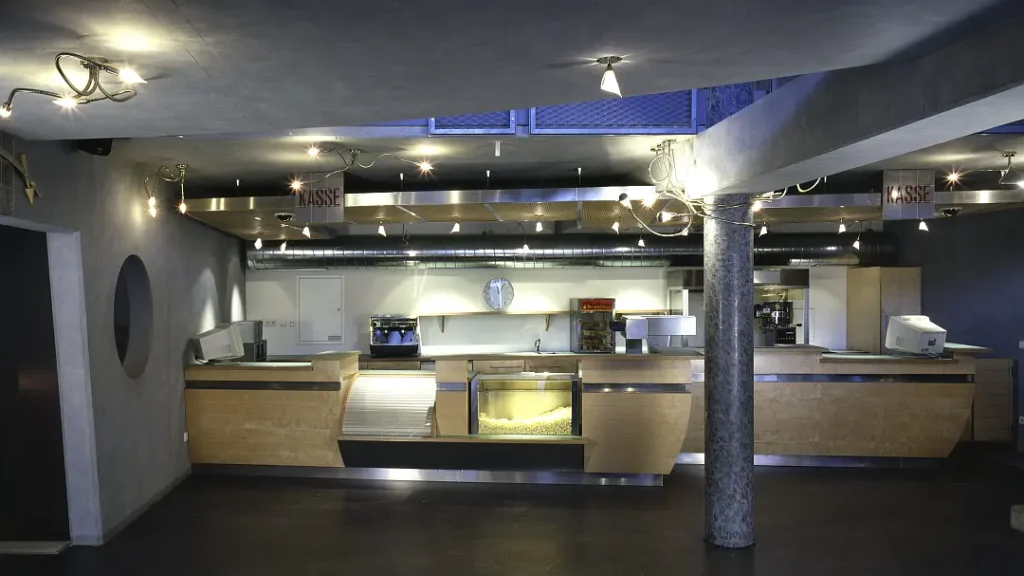 Instead of one large theatre, it now houses two additional theatres. Thus, the complex with the two smaller theatres (Bambi and Movie) in the next-door building was expanded from 3 to 5 screens. The foyer and lobby space was markedly increased, now stretching across 2 floors with connecting air space.