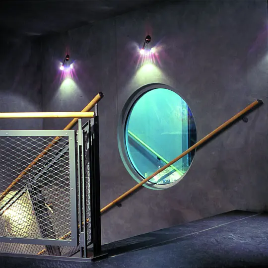 Details complete the design: wind protection elements at the lobby entrance, routing elements, integrated ventilation ducts and lights, transparent double-sided billboards or the arched bridge to the restroom area. The glittering mastic asphalt floor sparkles glamorously, while being extremely durable and low maintenance. The fundamental planning element was to marry function and design.