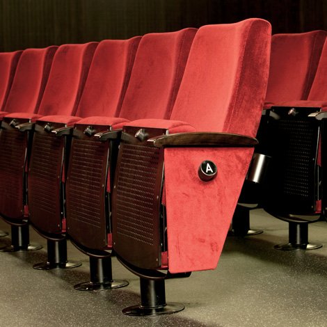Auditorium 1, created in the 70s, was long overdue for a new (customized) lighting design for the easily accessible areas, new chairs, flooring and an effective acoustic wall covering. In the lower area, the wood panelling was elegantly glazed in a darker tone, improving the film experience due to less reflection.