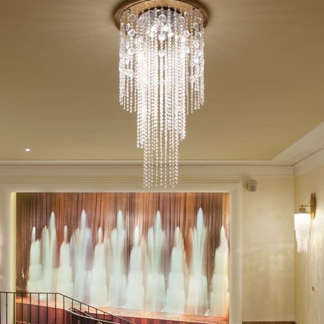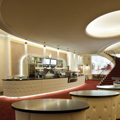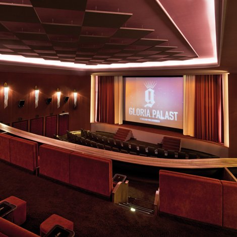 The fountains and lights that moved to the sound of the organ were legendary in the glamorous Gloria Palast. After the refurbishment, the design with glittering rhinestones can be found on the cascading glass stone chains of the lights, the upholstered bar fronts and screens, which enchant everything in an exclusive ambience. Comfortable leather armchairs, indirect lighting and a red carpet give the Gloria a new glamour.