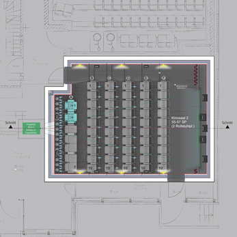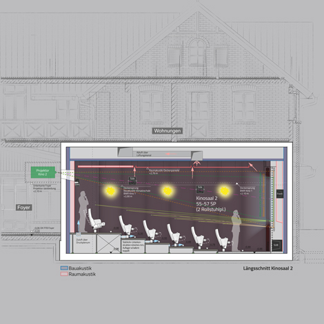 Auf Amrum, der Insel im hohen Norden, hat das Lichtblick-Lichtspielhaus ein neues Zuhause im Neubau des Dorfgemeinschaftshauses gefunden. Die beiden Säle und die dazugehörigen Nebenräume wurden kinospezifisch deutlich optimiert. Die assoziative Gestaltung im maritimen Look betrifft neben dem Kino auch den gemeinsamen Foyerbereich und den Multifunktionsraum der Gemeinde.